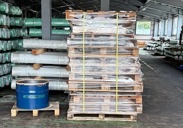 離れた工場間の行き来で、運送用保護カバーを使用してストレッチフィルムの使用量を削減。