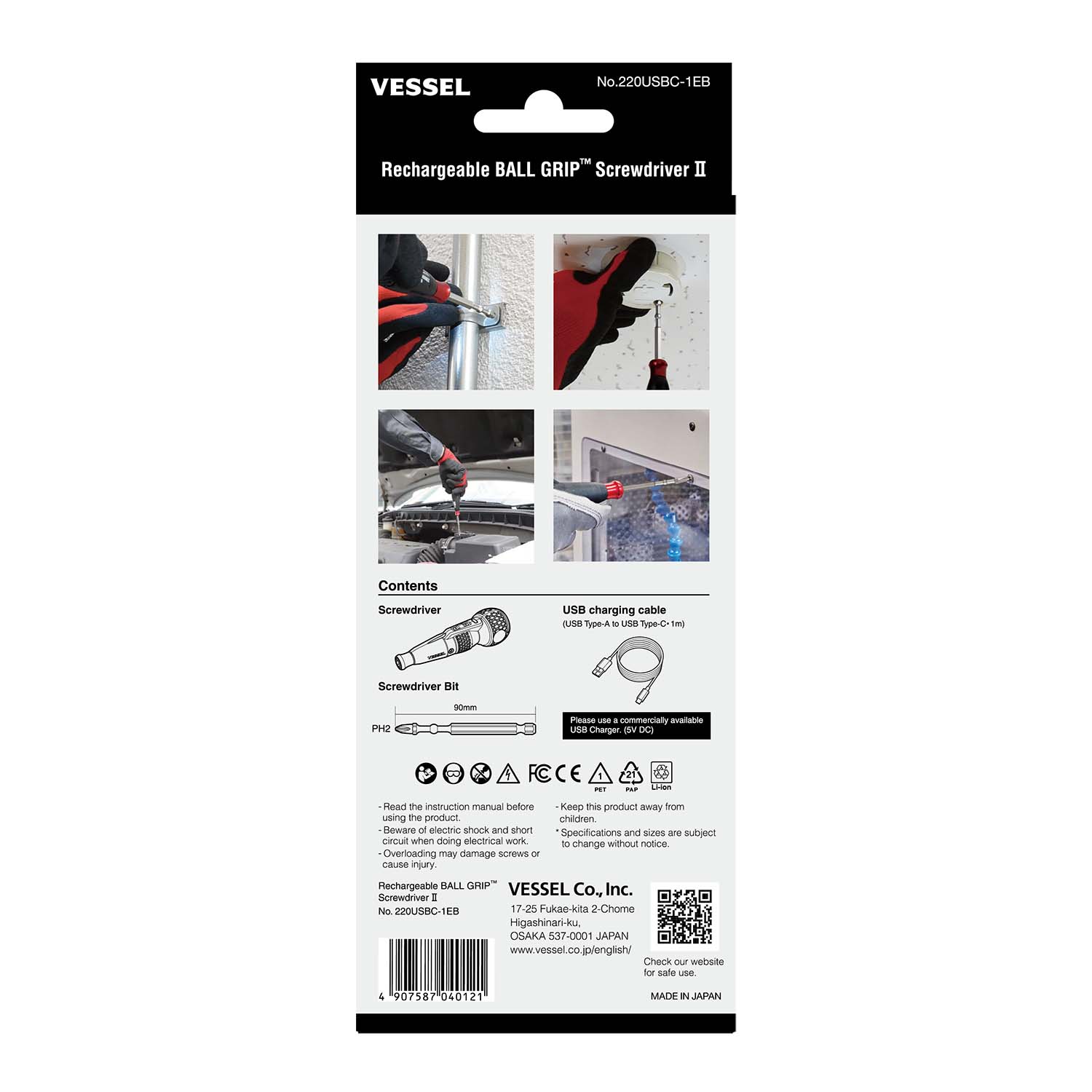 Rechargeable Ball-Grip Screwdriver Ⅱ (with 1pc. IMPACT BALL Torsion Bit +2 x 90mm) No.220USBC-1EB – ベッセル製品英語