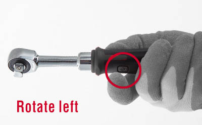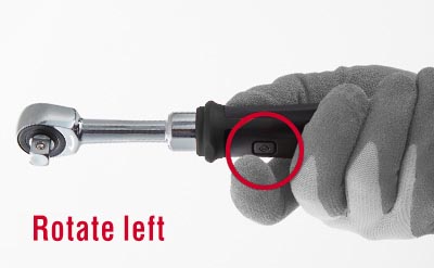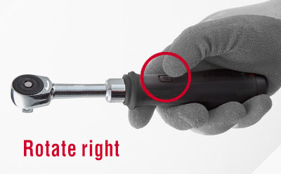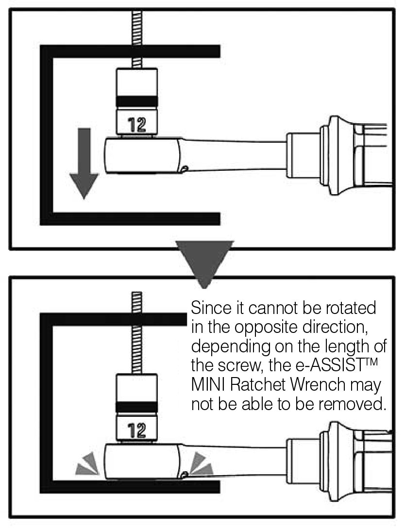 ※Due to the structure of the e-ASSIST™ MINI Ratchet Wrench, it is not possible to change the rotation with the switch. If the product becomes stuck, it must be removed by cutting the screws.