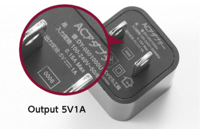 ⚠︎Warning: Use a charger with the specified charging capacity (Output: 5V1A). This product has a function to limit the output current from the power supply to protect the battery. Using a quick charger will not shorten the time required for charging.