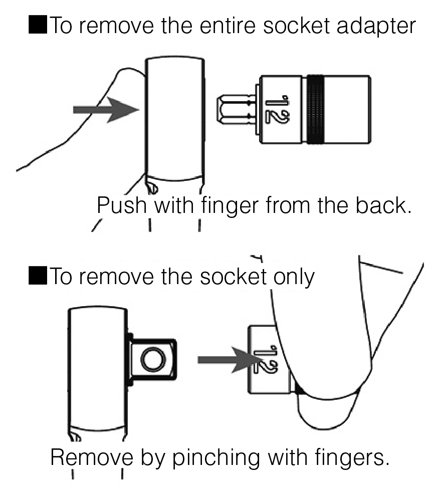 ※To remove the entire socket adapter after using the socket, push it out from the back of the head with your finger. To remove only the socket, pinch it off with your fingers.