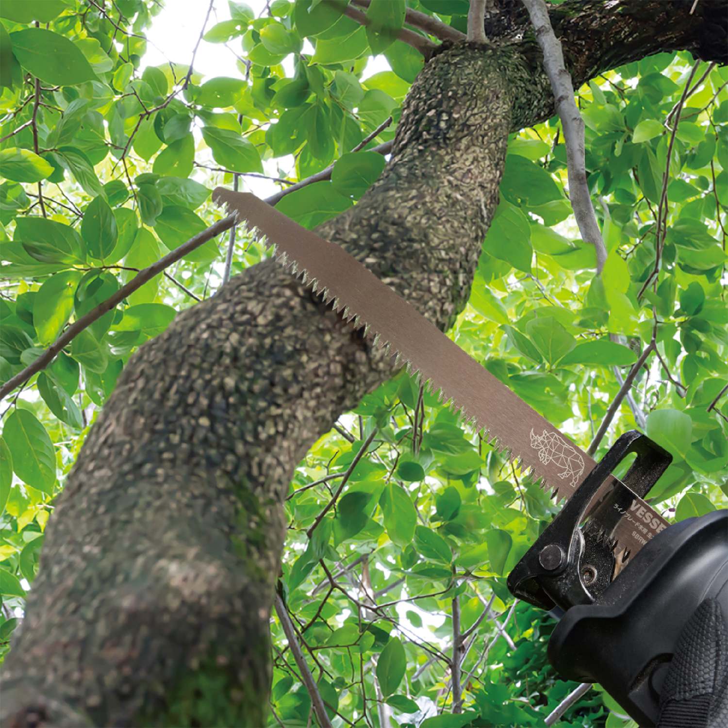 ●細目と荒目を併せ持つ「枝・幹ツイン刃」仕様。用途に合わせて使い分け!細目:ワークへの食いつきが良く、共振しにくい。庭木の剪定や、伐採前の枝払い、伐採後の切り分けに!荒目:スピーディな切断が可能。幹や太枝の切断に!●切断時の負荷に強い、刃厚1.2mm。生木切断に最適。●刃先の耐久性と切味が長く続く衝撃焼き入れ。●錆びにくい無電解ニッケルメッキ仕上げ。●差込部が丸く、ホルダー挿入時に引っ掛かりがない。