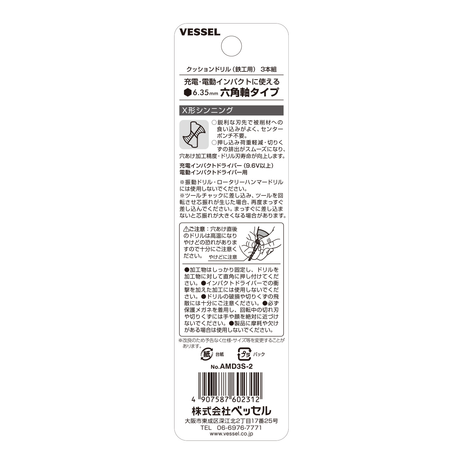 - クッションドリル(鉄工用)3本組 No.AMD3S-6.0(Φ6.0mm 3本)
