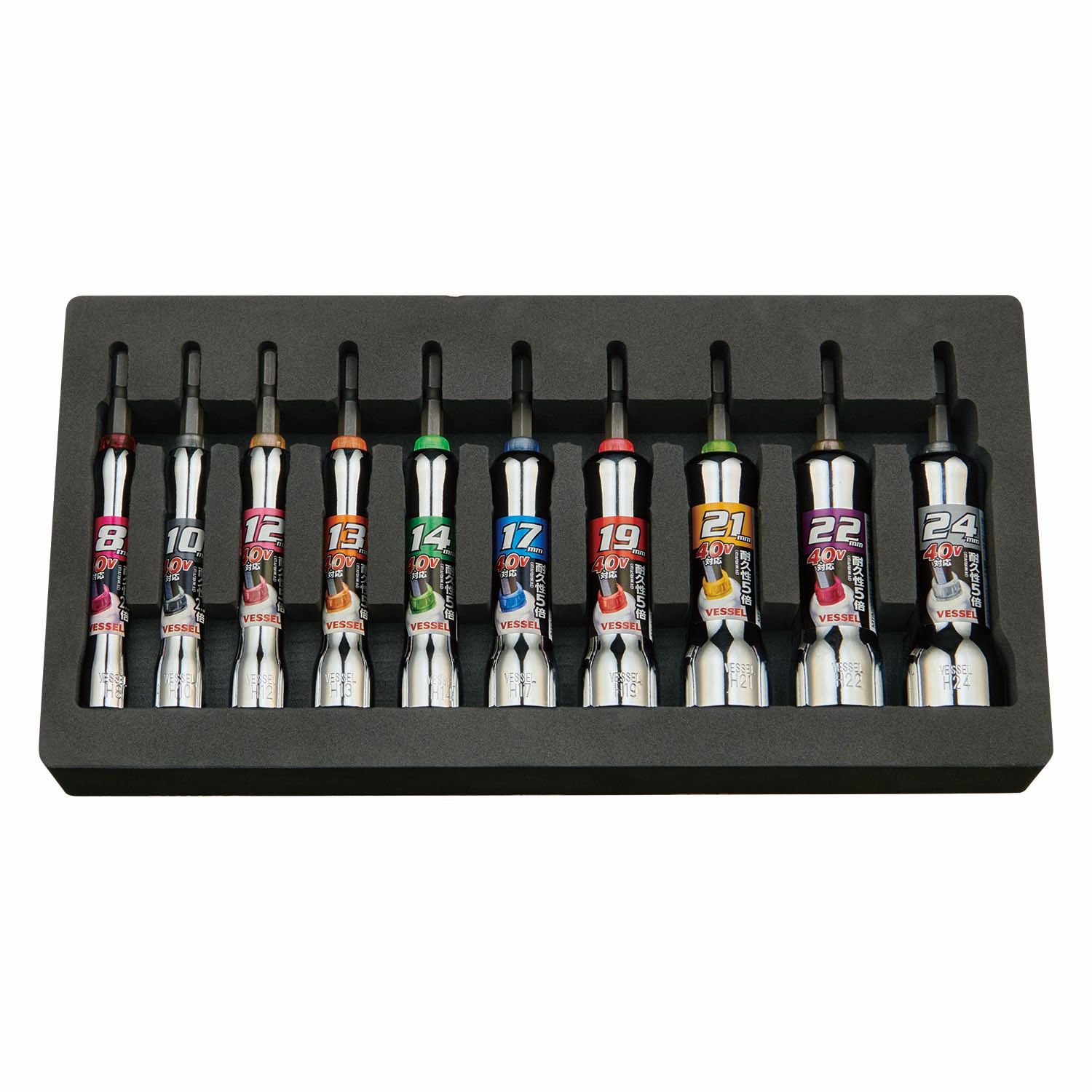 対辺8、10、12、13、14、17,19、21、22、24mm[10本]、EVAトレー