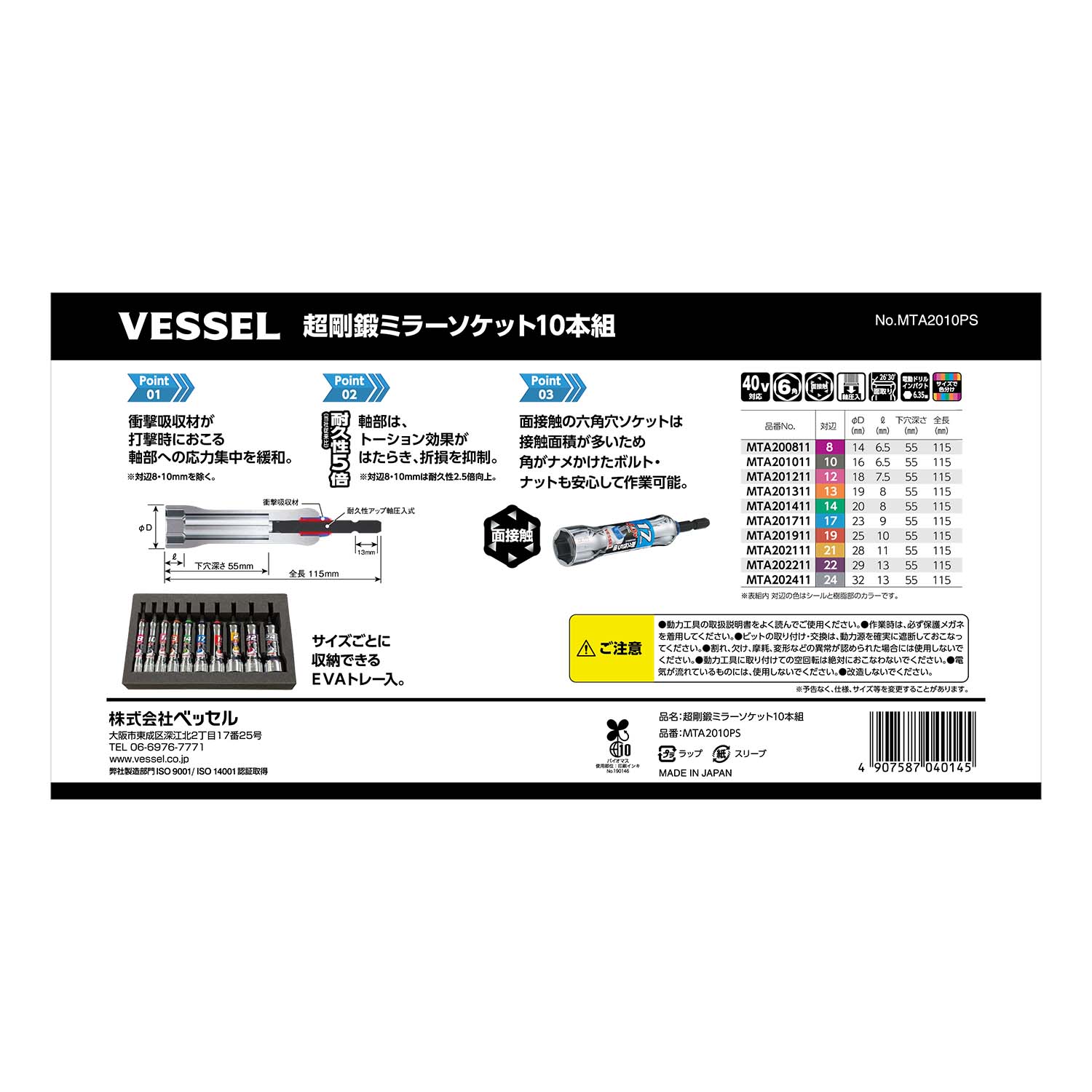 - 超剛鍛ミラーソケット 10本組 No.MTA2010PS