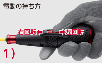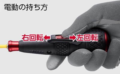 過度な負荷は故障につながります。特に、両手でないと緩まないようなネジへのご使用は避けてください。ドライバーが腰サックに入るようにギア部を小型設計しております。