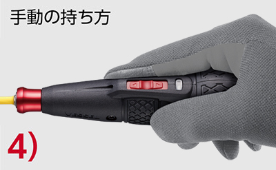 ⚠︎注意:手締め作業時にスイッチを操作しないでください。過負荷により電動ドライバーが損傷する恐れがあります。